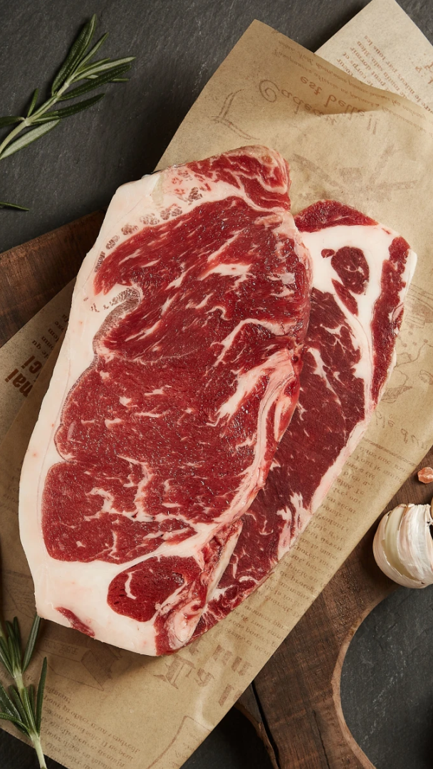 特点:上脑牛排是牛后颈部位的肉,肥瘦均匀,但总体偏瘦,口感软绵细腻。