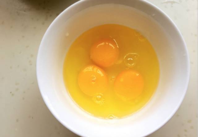 3、鸡蛋打入碗中用筷子打散;