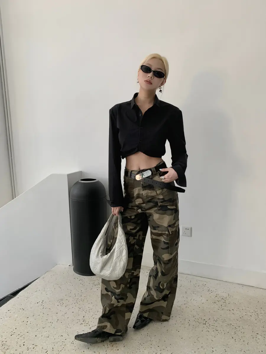 短西装+迷彩工装裤
