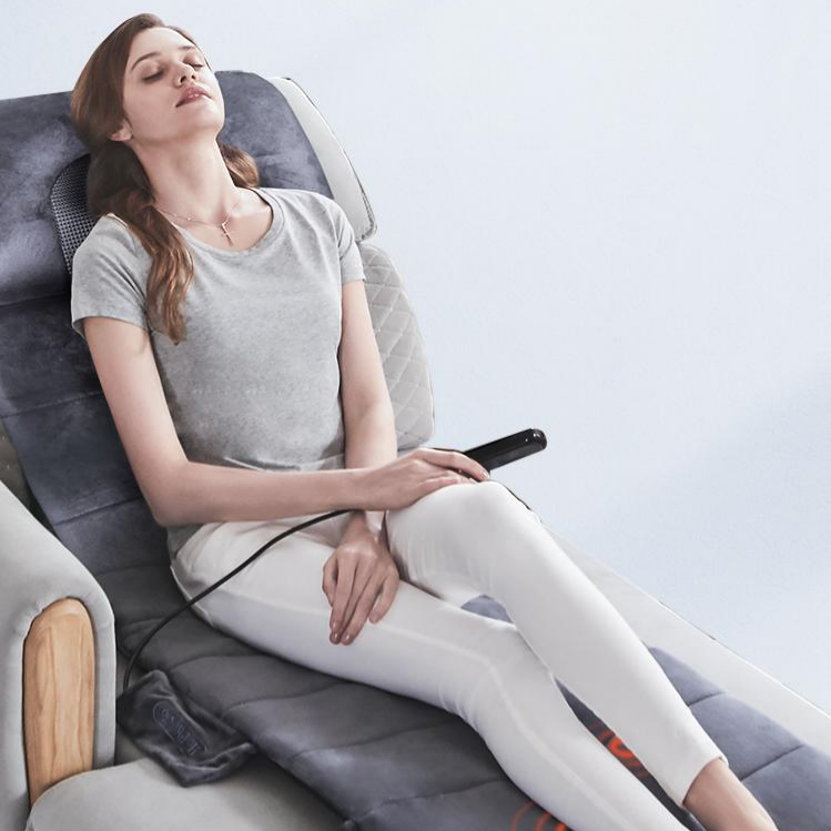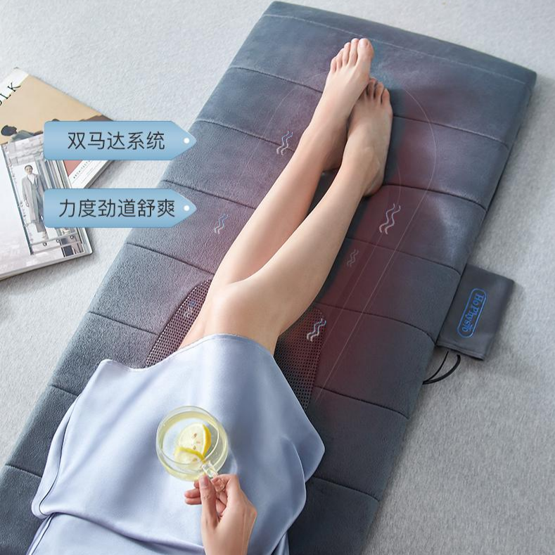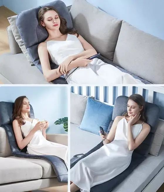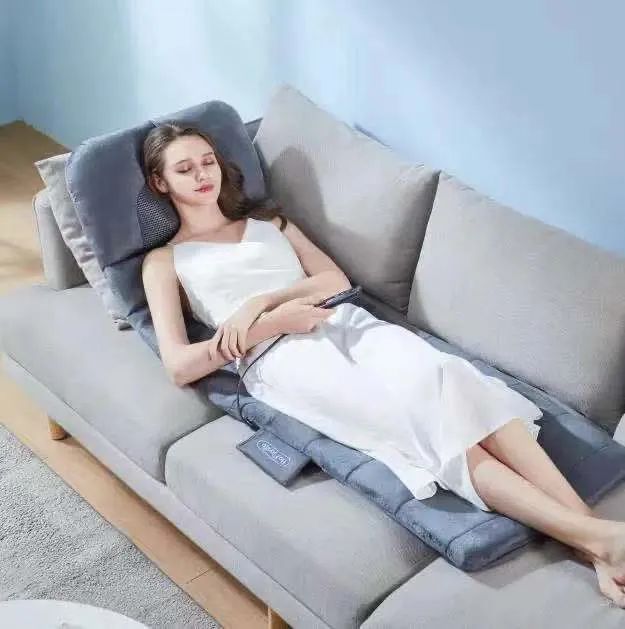 它不像按摩椅那样笨重,展开后铺在床上、沙发上、地毯上......哪里都行,坐着、躺着、卧着也行。