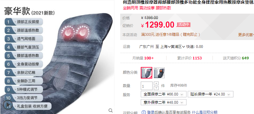 何浩明按摩垫(三代),旗舰店原价1299元。