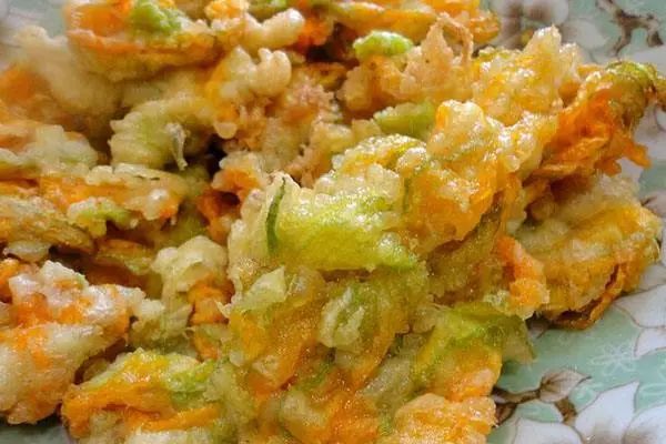 套炸南瓜花、南瓜花煎鸡蛋、花生南瓜花汤、啤酒酿南瓜花、青椒炒南瓜花、生苦瓜拌南瓜花、南瓜花饼、南瓜花粥……