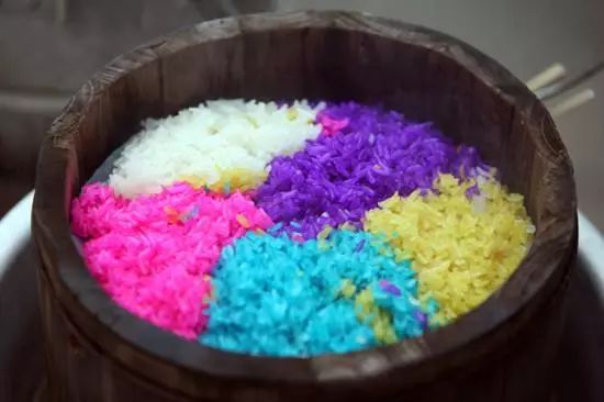 五色花米饭是布依族人的专利,将米饭染得五彩斑斓,赋予了米饭无尽的诗情画意和浪漫情调。