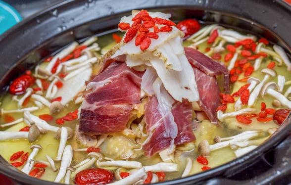宣威老火腿、昭通天麻、文山三七,再加上一直肥嘟嘟的老母鸡,整个云南的精华就在这里。鲜香美味,肥而不腻,滋补养神。