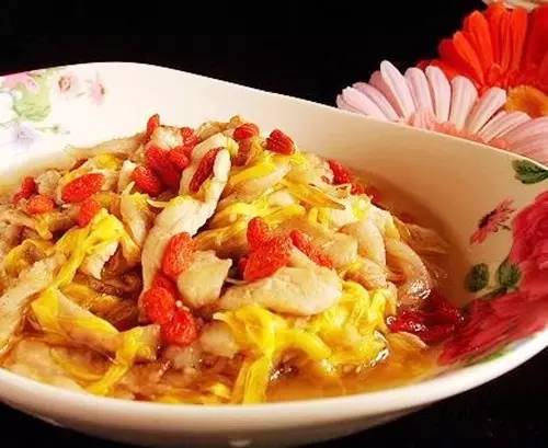 菊花炒肉丝、菊花过桥米线、菊花杏仁豆腐、菊花粥……