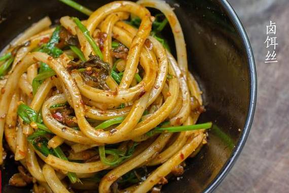 光是饵丝也有上百种吃法。有昆明卤饵丝,一碗美味的卤饵丝一定是要有新鲜的豌豆尖,热水里过一道,再放上油辣椒,花生碎,酸菜,酱油和糖,和着香糯的饵丝拌一拌,光想到就流口水了。