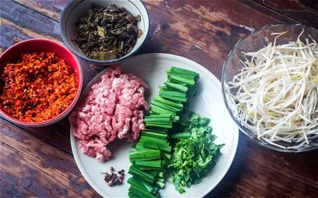 同样是小锅米线,换一种配料味道就大不一样,最常见的小锅米线是用新鲜碎肉、韭菜切段、腌菜、豆芽、豆腐皮,以及用骨头熬制的高汤。