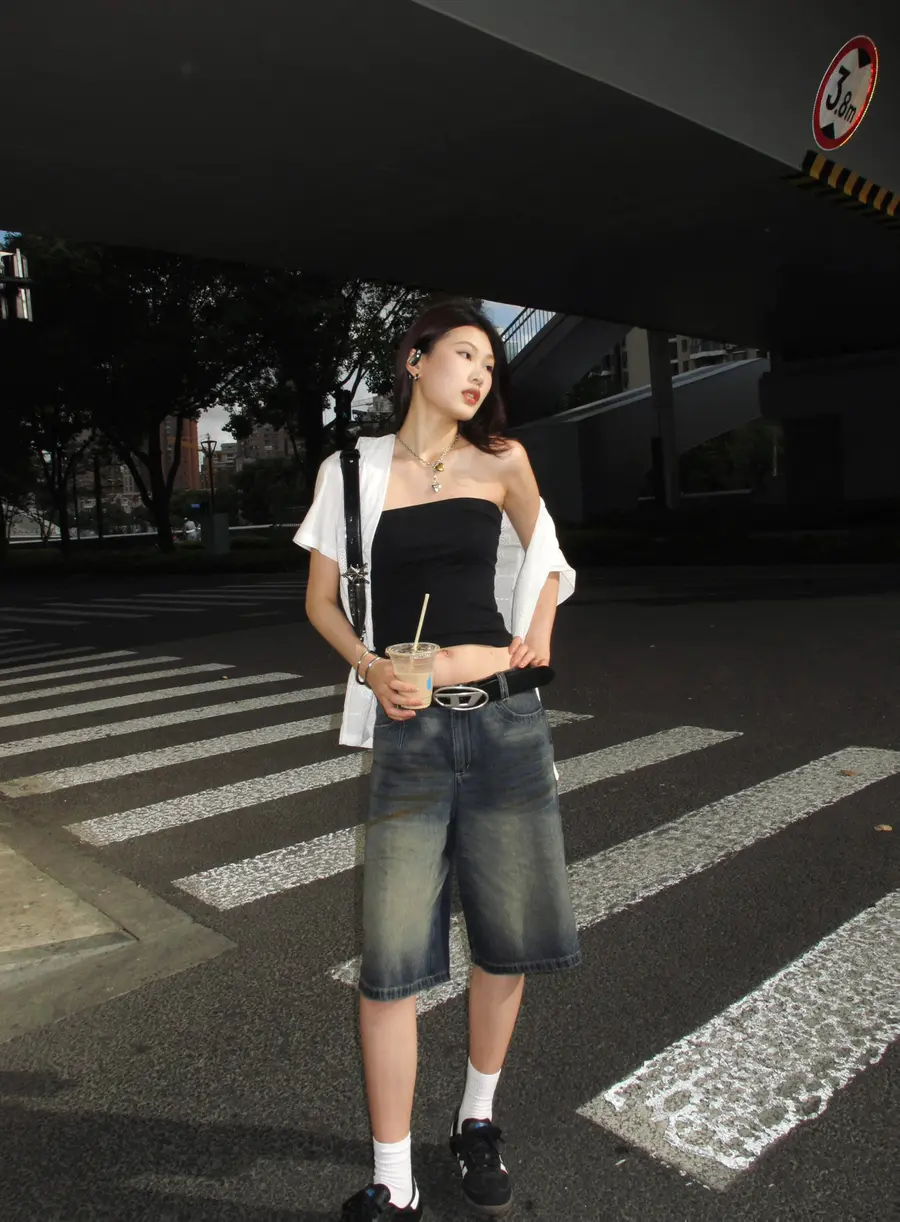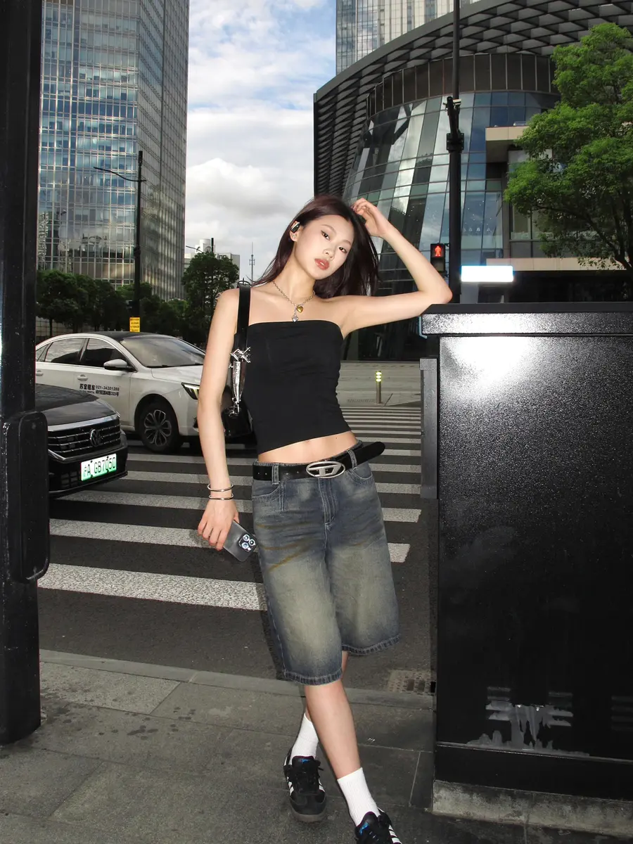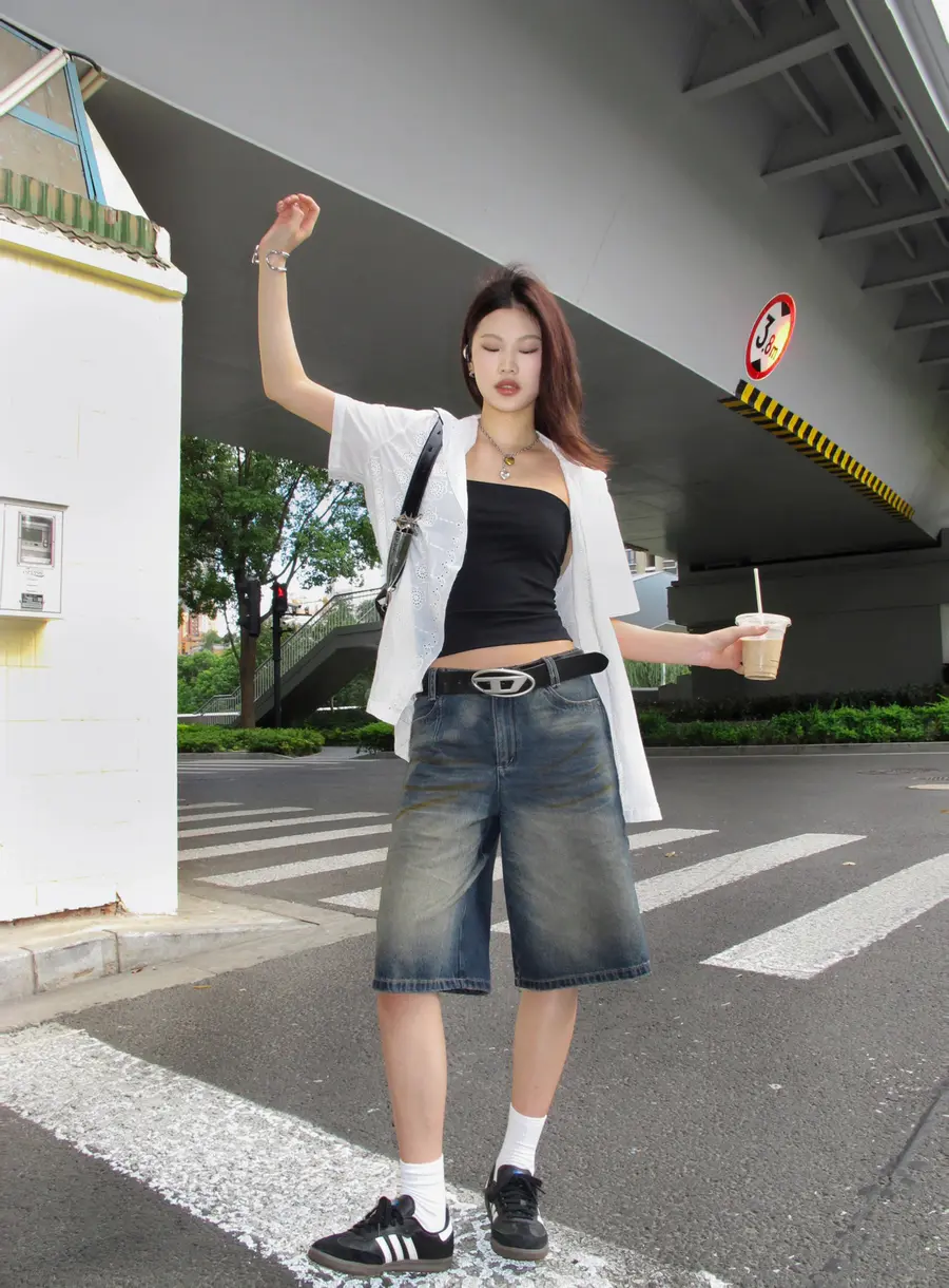新品上身|牛仔𝑮𝒊𝒓𝒍都市纵横录,宽松中裤真的超百搭💓
