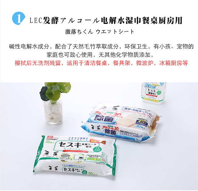 日本LEC激落君厨房餐桌用除菌清洁湿纸巾