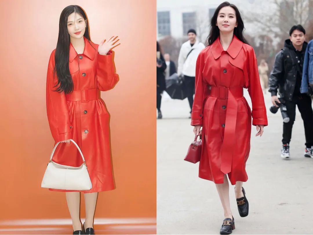 不过刘诗诗还是用自身好气质,把这件红色长皮衣穿出了惊艳的效果。