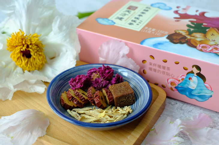 同时「红糖姜枣暖暖茶」中除了经典的红糖与干姜,还加入了红枣、重瓣玫瑰。红枣有补中益气、养血安神、缓和药性的效果;而玫瑰花有理气解郁、活血止痛的作用。