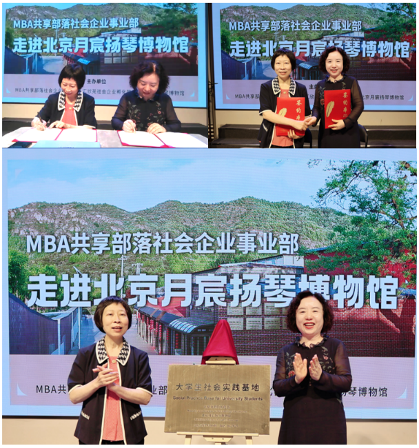 随后,汇欣苑社会企业孵化器王悦总与北京月宸扬琴博物馆馆长刘月宁教授共同签署了《汇欣苑科技孵化器+社会企业孵化器》战略合作框架协议,并为“大学生社会实践基地”揭牌。