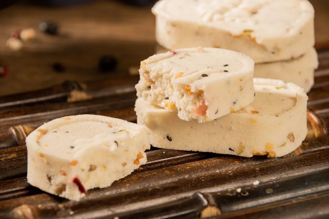 不得不说,这一点运用得十分巧妙,一般而言,低糖低油的糕点会显得寡淡而干涩,但坚果仁的油分不仅提香、增加了口感层次,适当的油分也让这款糕点的口感更加顺滑。