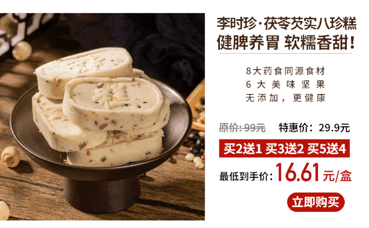 小编今天给各位推荐一款健康轻养的食补好物——「李时珍·茯苓芡实八珍糕」。