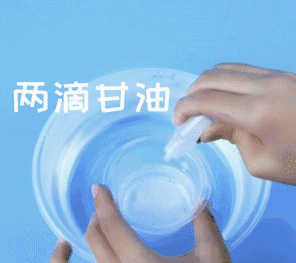 第四步,给皂基溶液中滴上2滴甘油,再根据自己的喜好,选择喜欢的香精和色素滴进去;