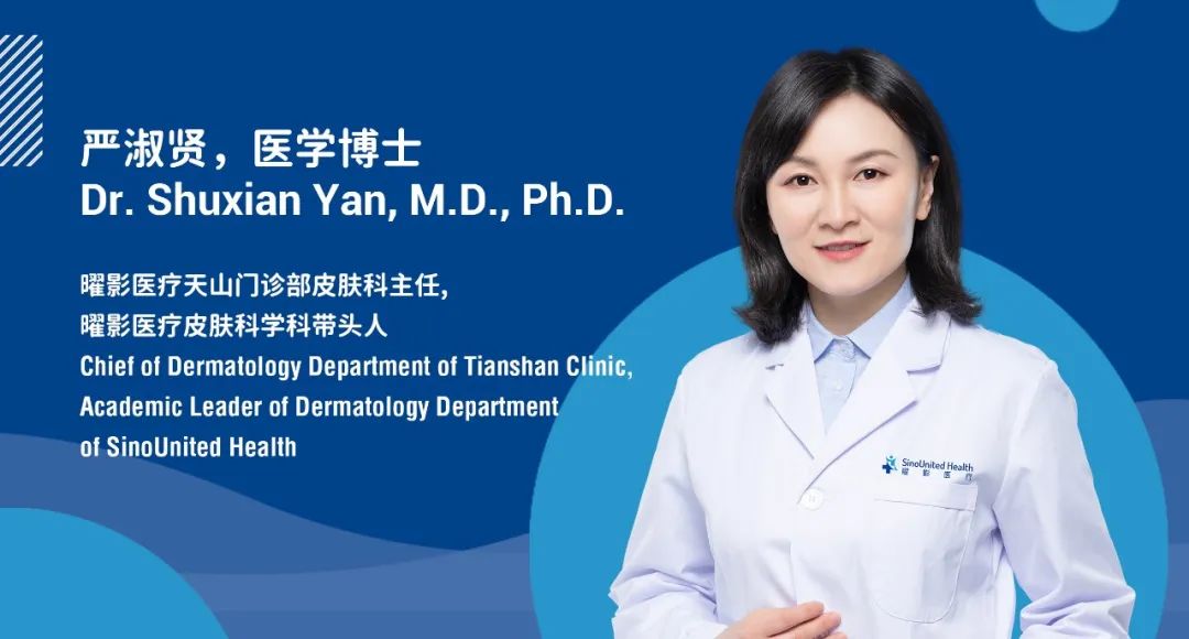 Dr. Shuxian Yan is currently the Chief of Dermatology Department of Tianshan Clinic and the Academic Leader of Dermatology at SinoUnited Health.