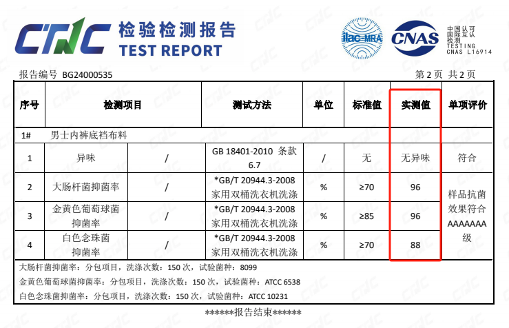 经权威机构实测,在150次洗衣机洗涤后,内裤抗jun率仍高达96%!