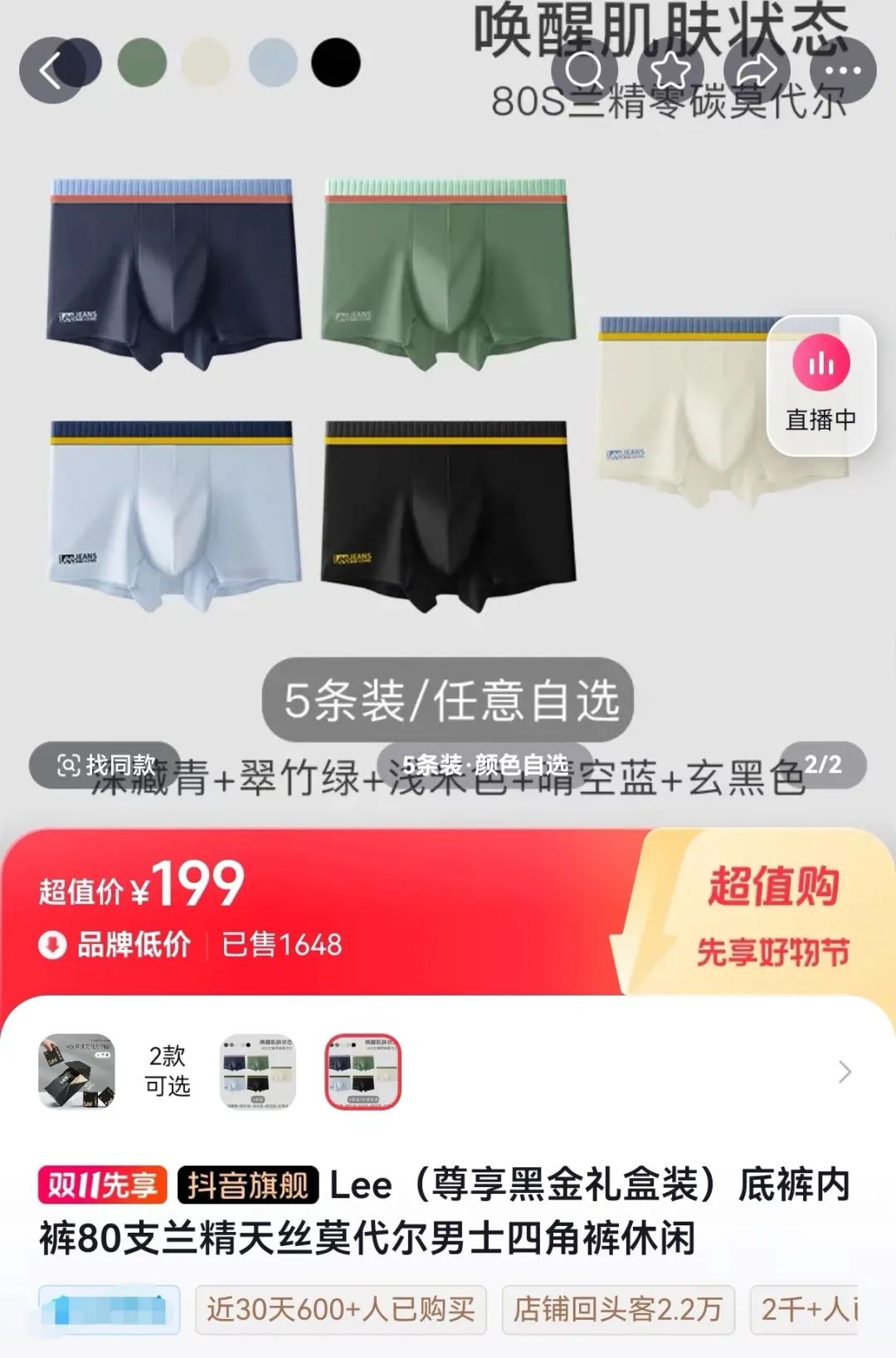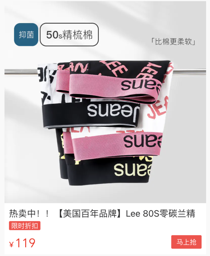 之前我们上了一款Lee男士超薄冰丝内裤,一上架疯狂爆单,后台好评炸了,很多人都是5条10条入手!