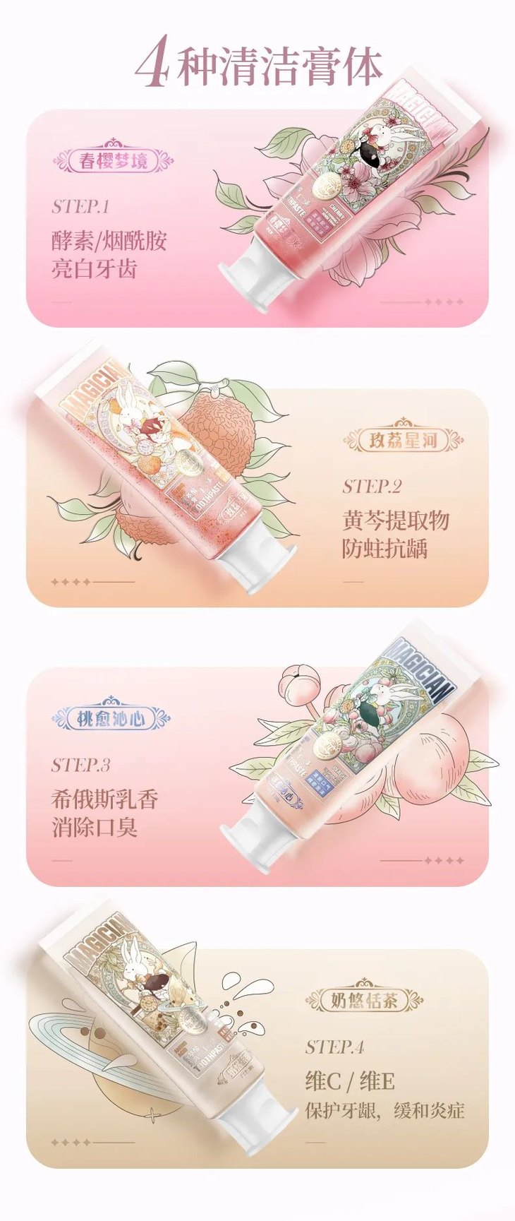 玫瑰荔枝味牙膏是首款添加德国奥拉氟成分的成人含氟牙膏