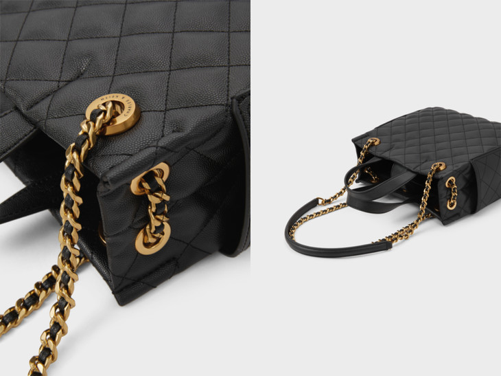 品质五金电镀抛光,精美结实时尚锁扣+立体五金链条肩带,轻松出行,有颜有样。