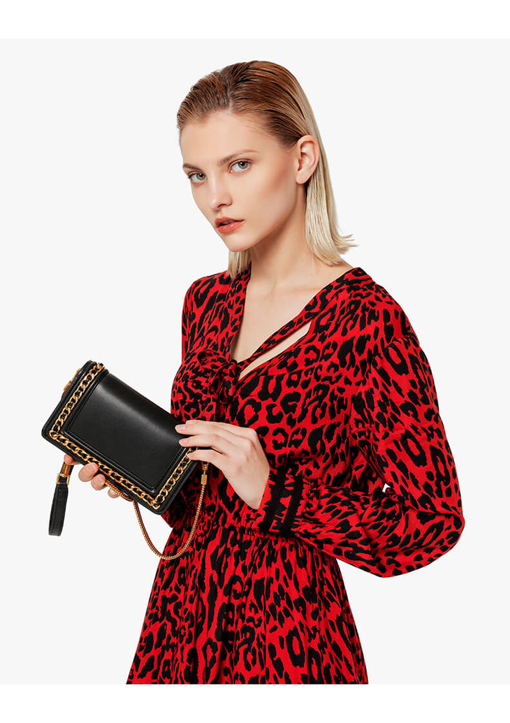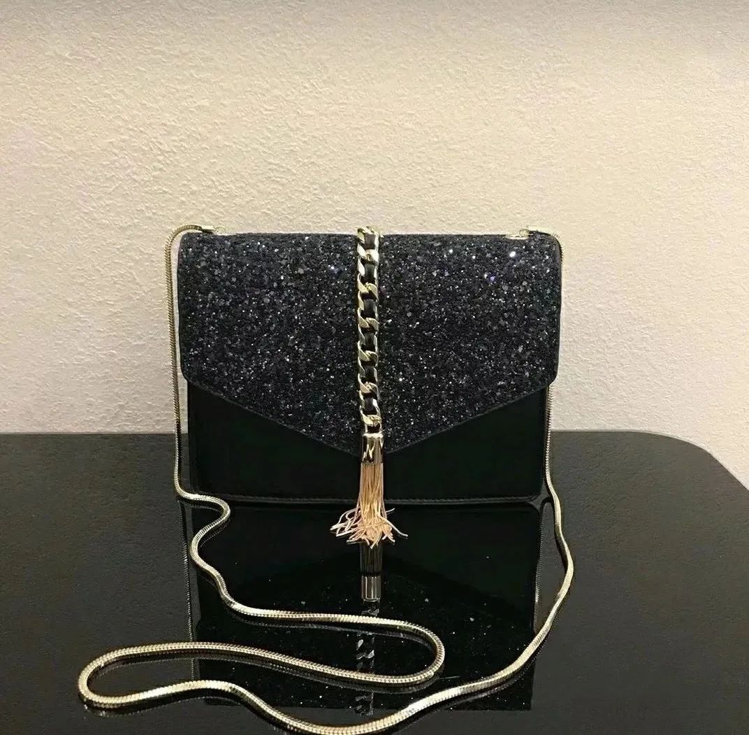 金属链条背带设计,在阳光下光彩熠熠,在与素色装束搭配时也不会显得单调。可背可提,舒适方便。
