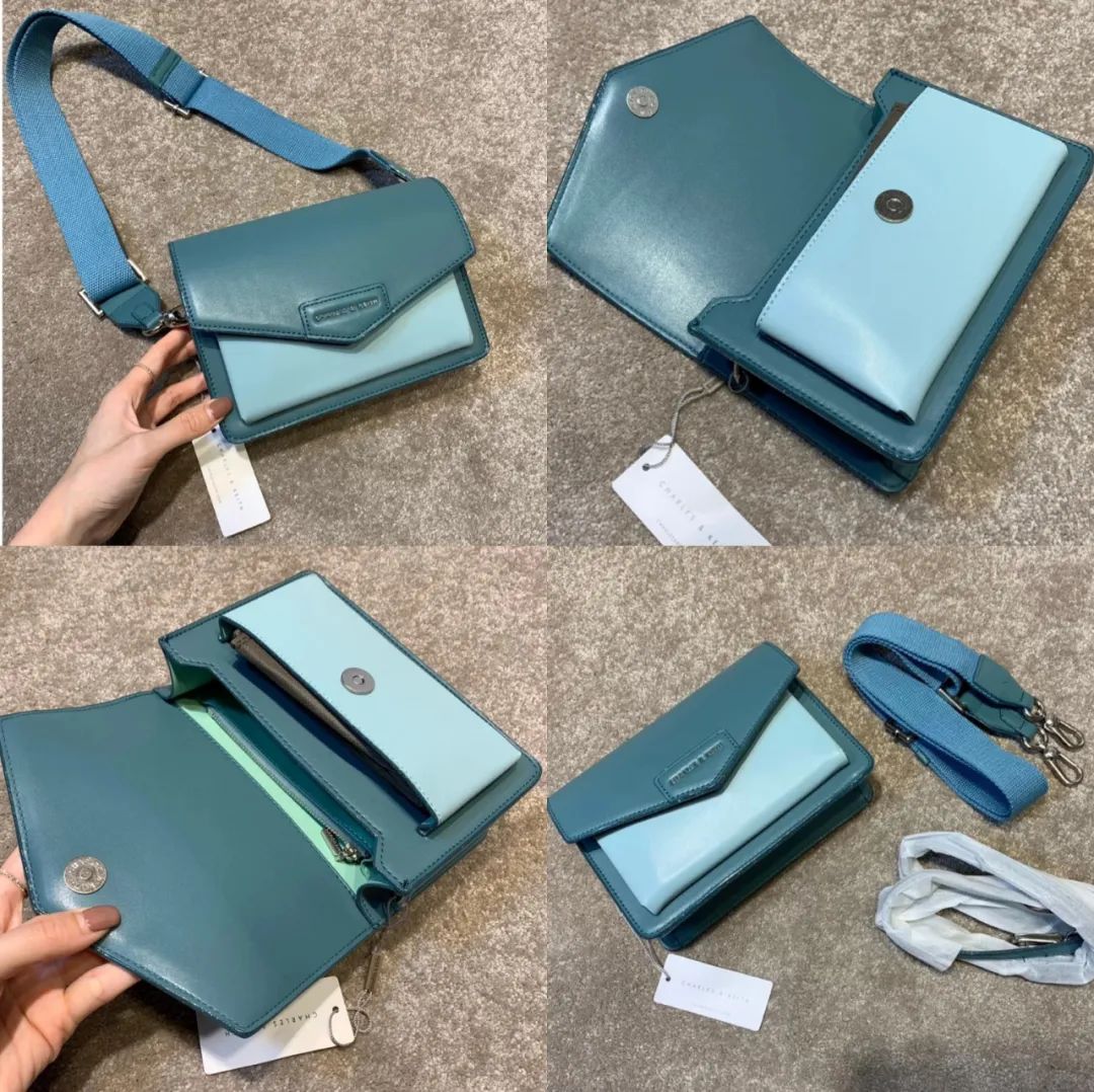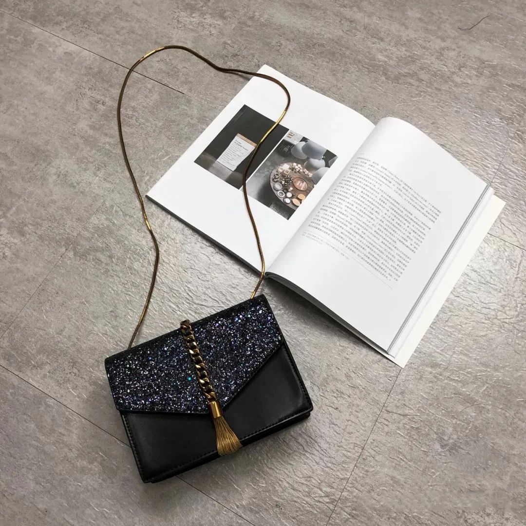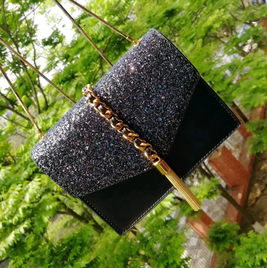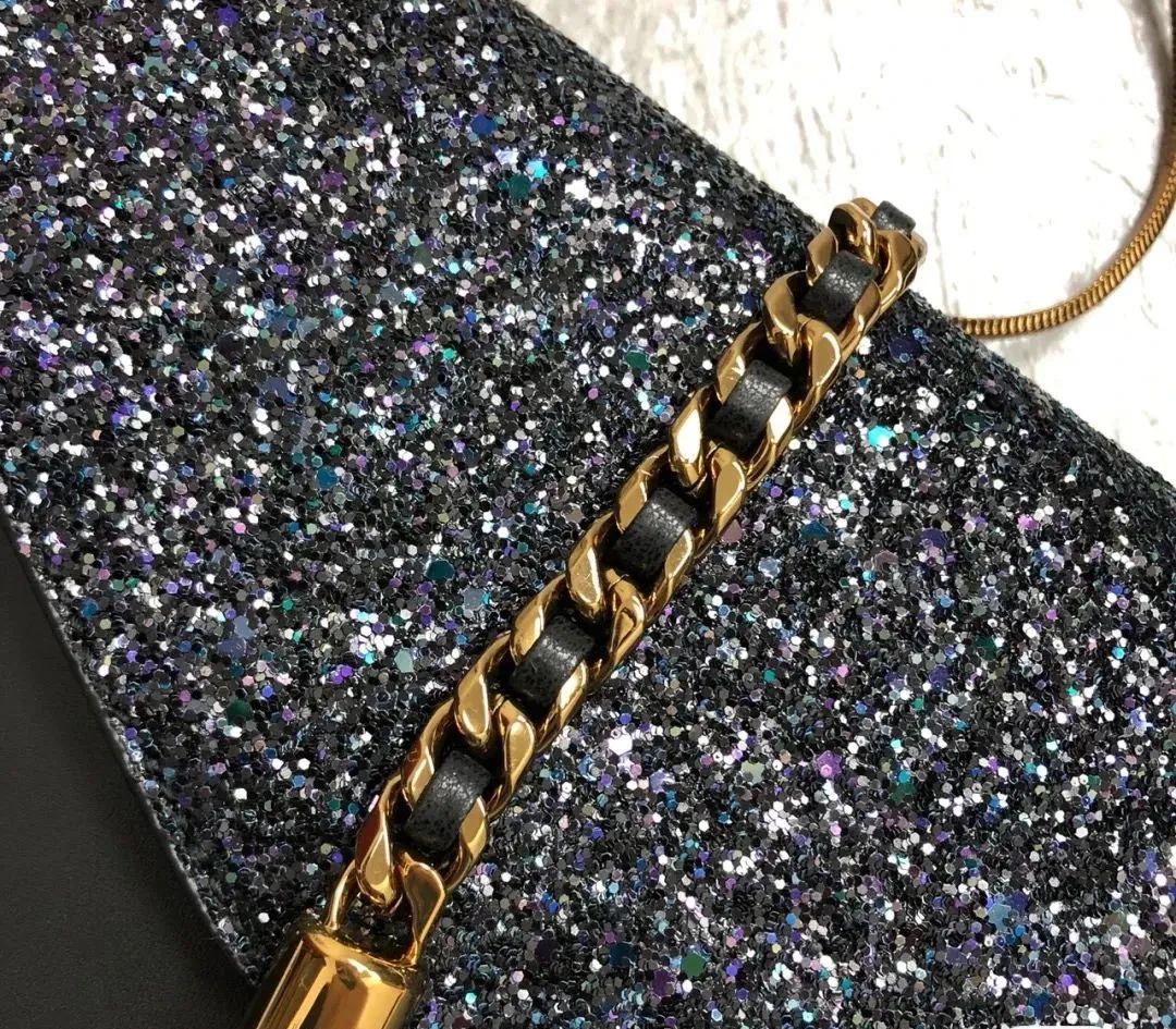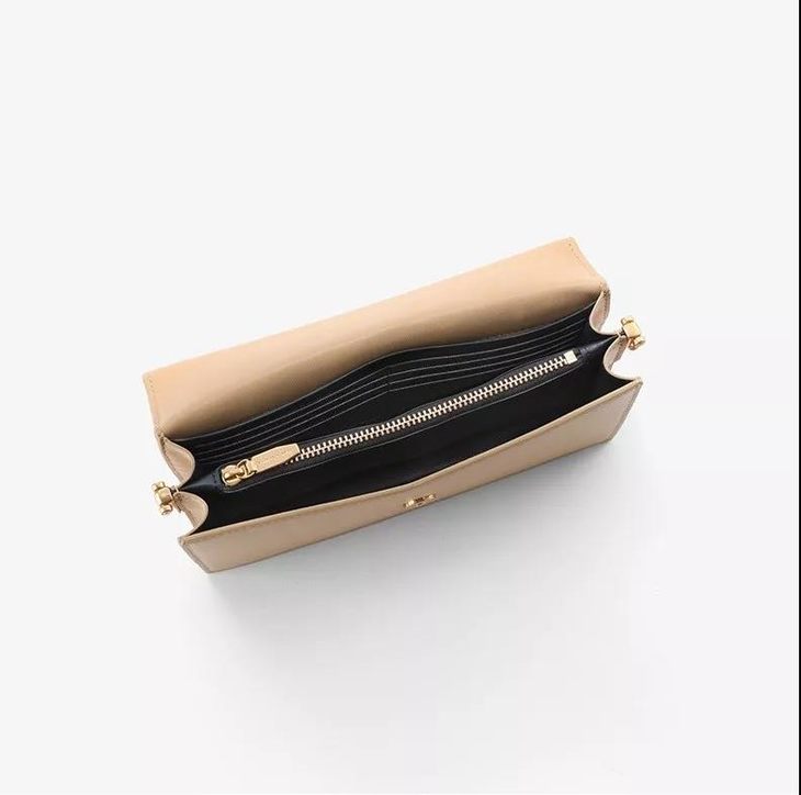这一款比较小巧,颜色有点像莫兰迪色,非常养眼。搭配的金色龙骨链可以单肩或者斜背,拎着小手提很有小贵妇的感觉,超级显气质。参加宴会、聚会也是很好的选择!
