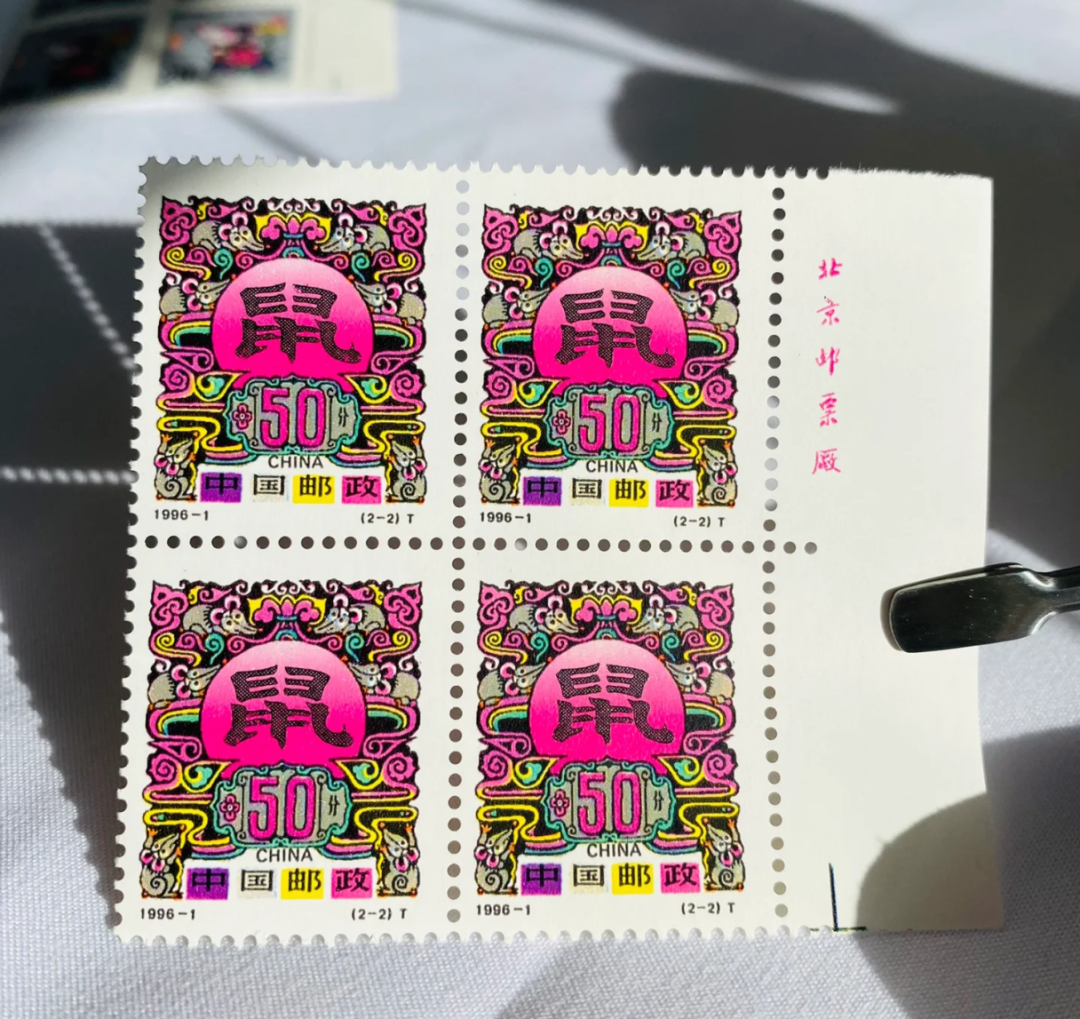 比如1996年2-2鼠(书法)邮票,是目前发行的生肖邮票中唯一没有纪年年号标记的!