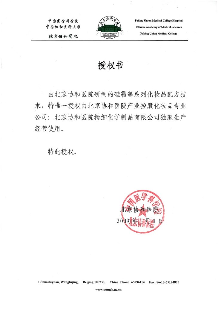 为响应市场需求,北京协和医院授权北京协和精细化学制品有限公司,生产和销售北京协和医院研制的硅霜等产品。