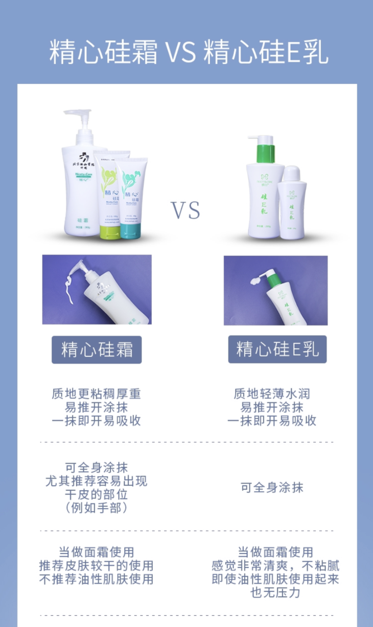 精心硅霜与精心硅E乳能滋润皮肤,可多亏了产品中的硅成份。