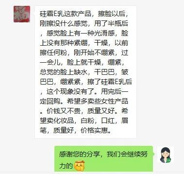 留言也很实在,接地气,没有过度渲染,和精心硅霜一样,大白瓶子实实在在。