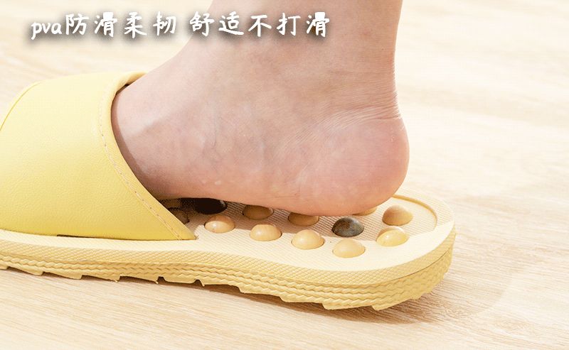 而玉石按摩拖鞋采用pva防滑柔韧材质,防水防滑,丝毫不用担心打滑发霉!