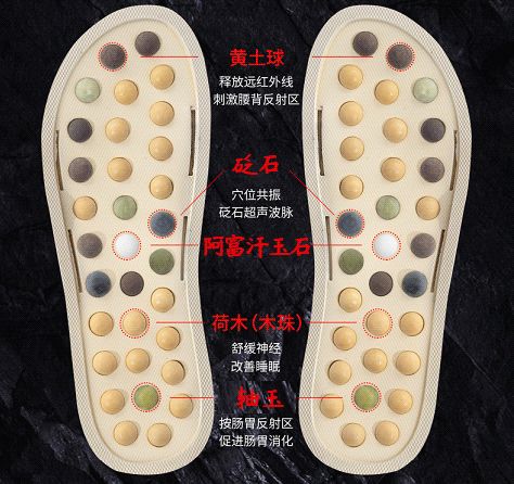 玉石按摩拖鞋进过上万次实验,将64颗玉石分区放置,定点专项刺激,全面按摩,更专业!