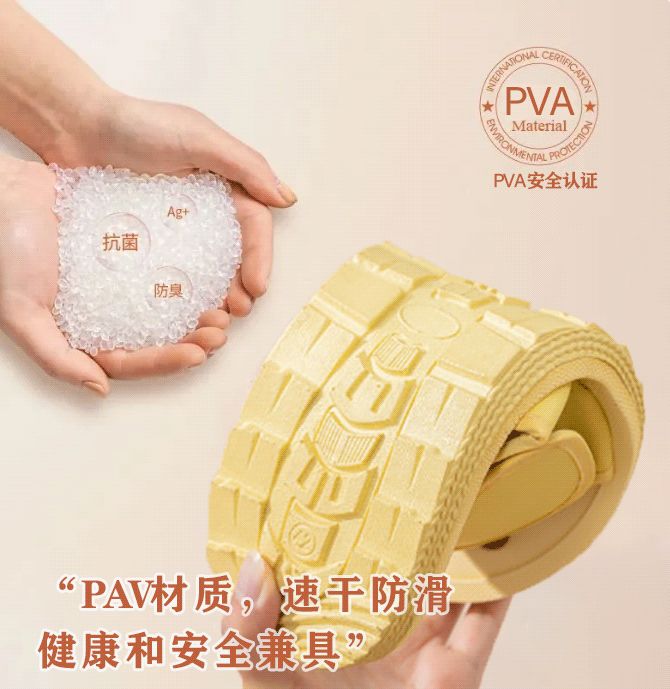 pva材质不变形不开裂,一双穿3年,不闷热,好像脚上穿了个小空调~