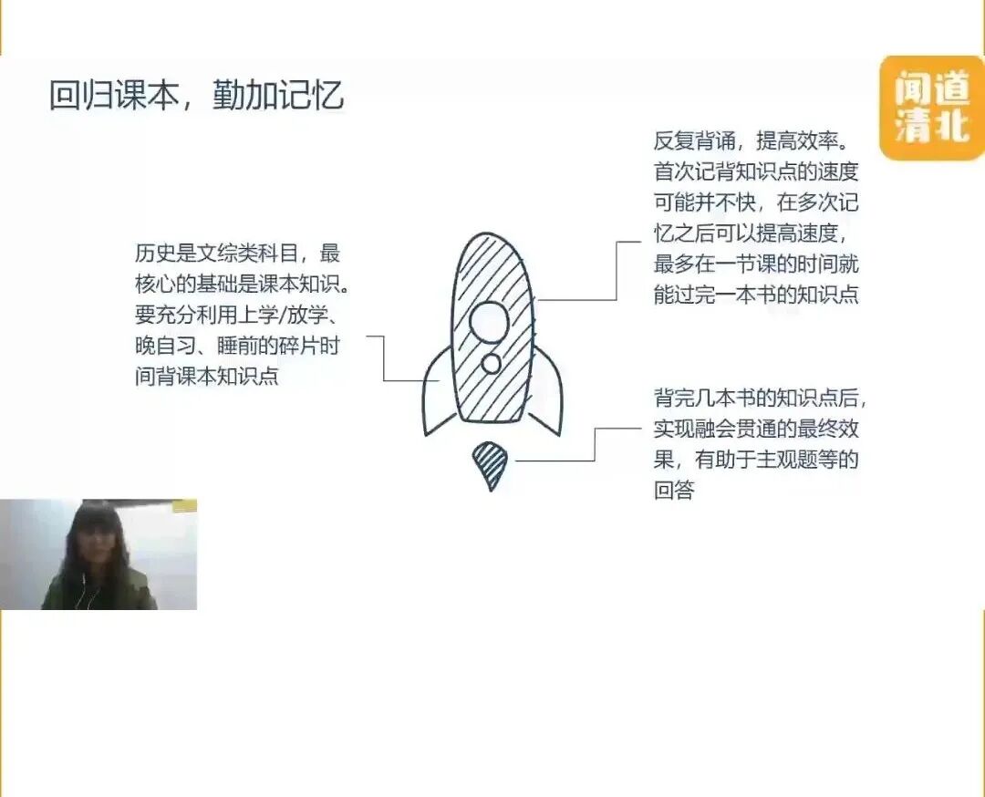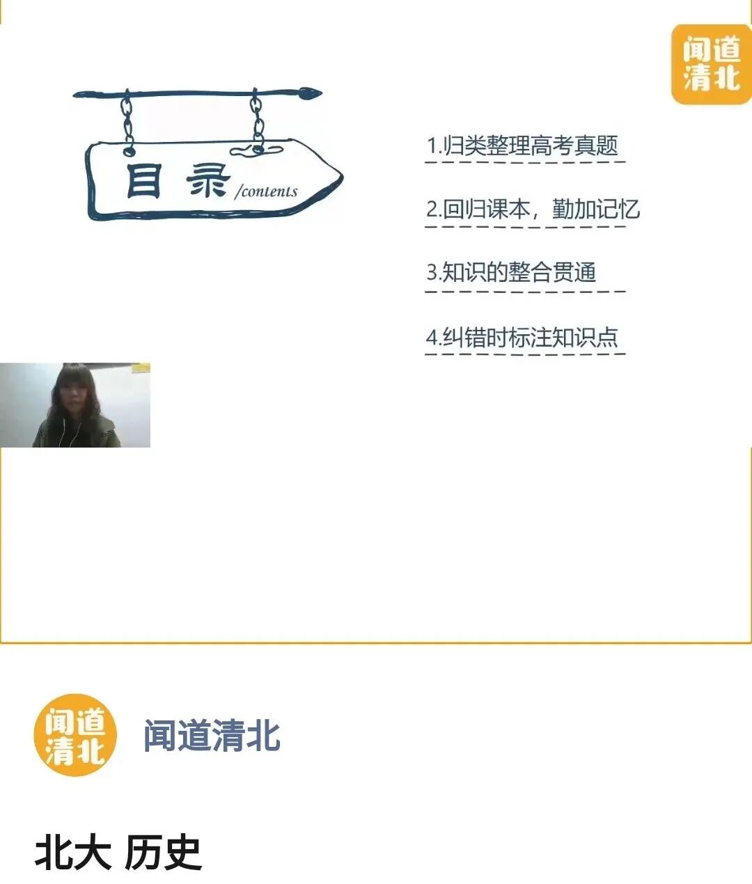 比如下图中,就是考入北大的历史学霸,在分享自己学习历史学科的心得。十几分钟的课程干货满满。