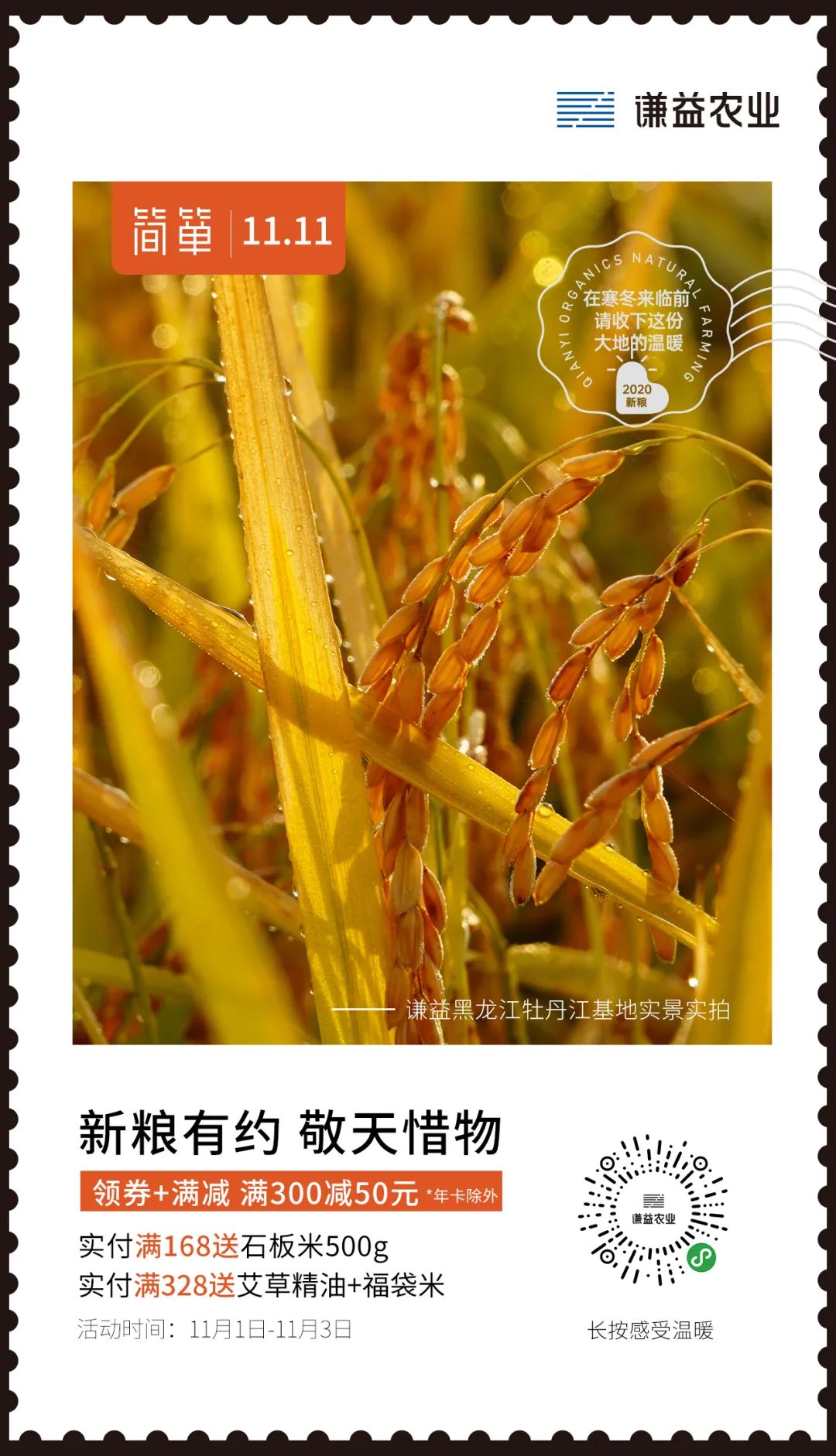每天上午10点,11.11元秒杀价值30.7元福袋礼包,包邮(石板大米500g +美人粥250g )。