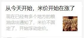 因今年粮食收成全国性减产,从即日起,大米价格按当天稻谷收购价一车一定价。