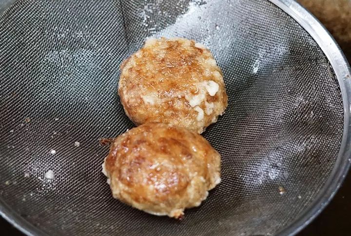 » 这样做,后面油炸的时候表面会有一层脆皮,肉馅不易老,肉饼不易散。