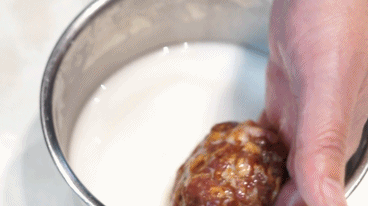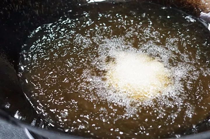 5. 入锅炸:油热到7成热(表面有烟冒出),狮子头下油锅炸。