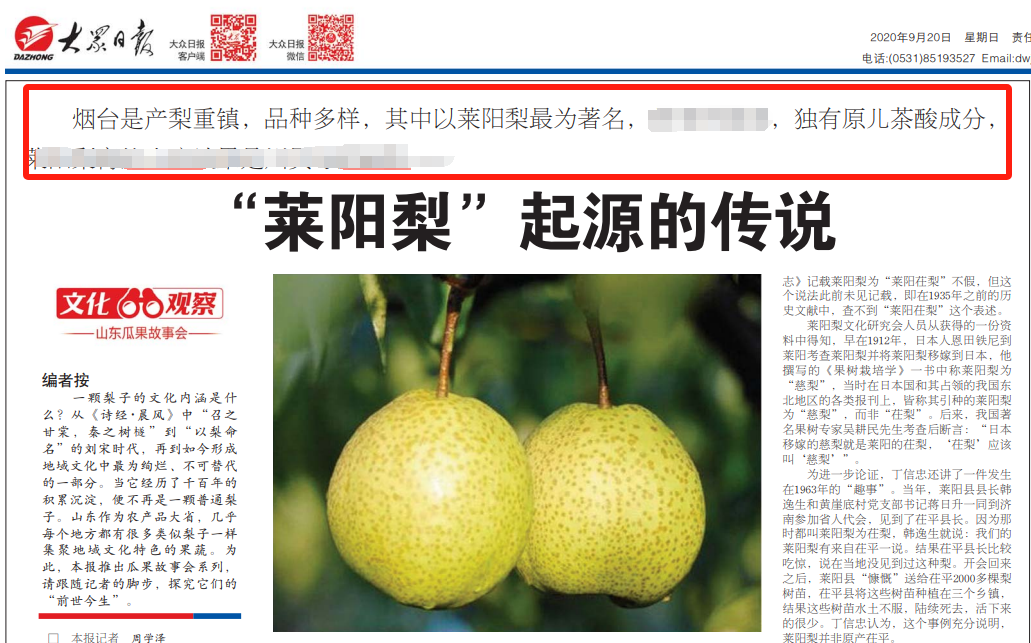 莱阳慈梨还有宝贵的“原儿茶酸”成分,可谓梨中上品!