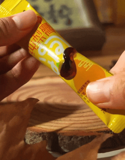 随手拆开一条,看到的就是晶莹剔透的琥珀色膏体。