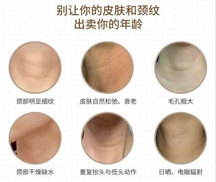 ②护理不当。如果平时又忽略颈部皮肤的护理,不注重颈部的保湿和防晒,就很容易产生颈纹