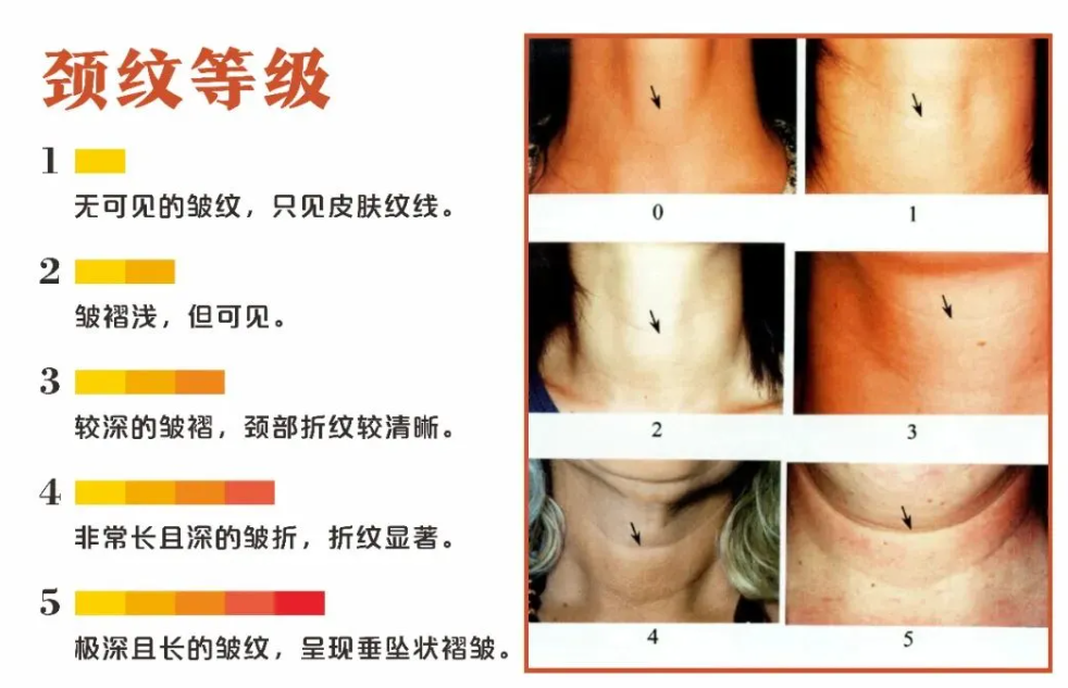 颈纹根据严重程度可分为5级:
