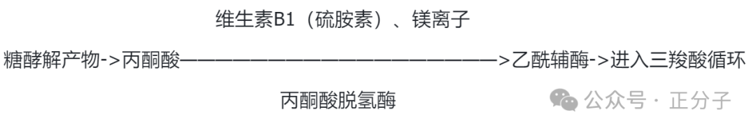 这个反应用到的催化剂是丙酮酸脱氢酶,人体自身产生的一种蛋白质。它不能单独起作用,还需要两个重要的帮手:维生素B1(实际上是维生素B1的变体焦磷酸硫胺素,此处简化)和镁离子。