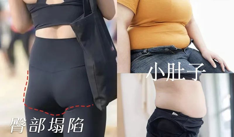 不仅腹部赘肉堆积,还会导致肌肉无力下垂。