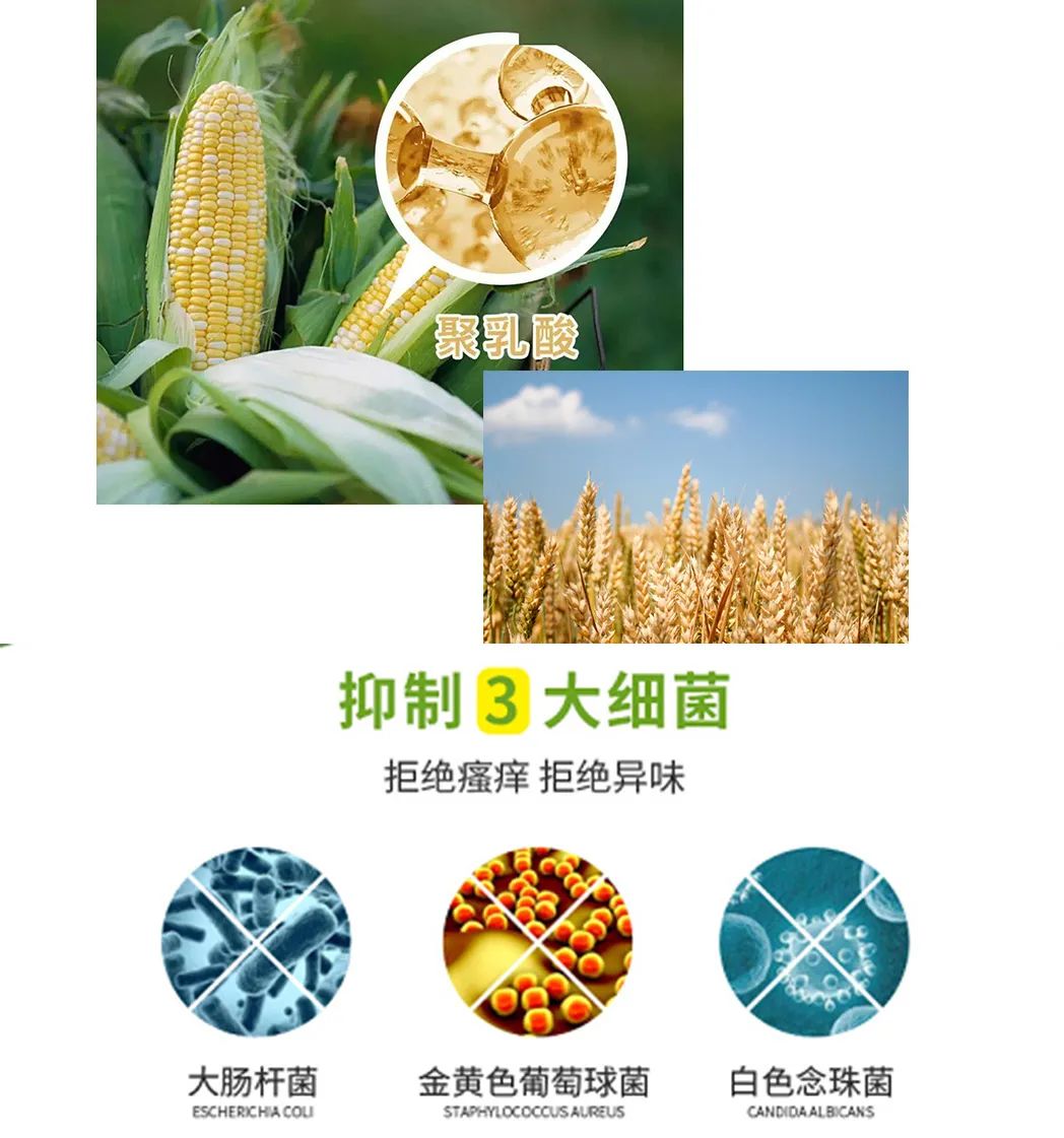 聚乳酸纤维是由玉米、小麦等纯植物中,经发酵转化成乳酸制成的,具有天然的抗jun力,呈对私处有益的弱酸环境。