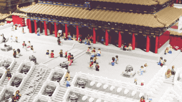 《故宫三大殿》共耗费50万颗乐高拼成,可谓是此次展览的重中之重,也是这次展览规模最大、细节最多,最能展现中国文化艺术的一个展品。
