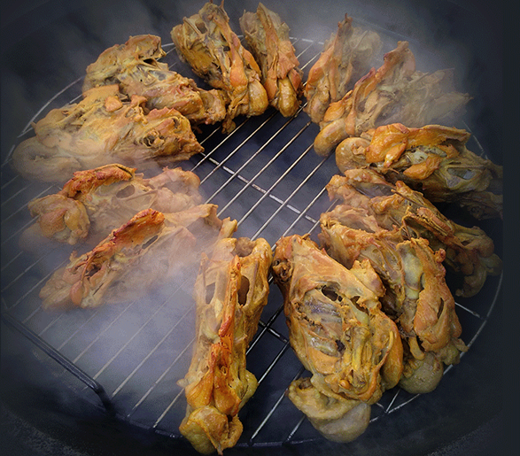 东坡烤鸡背,只要吃过的朋友,隔着屏幕都能记忆起它那诱人的熏烤香。