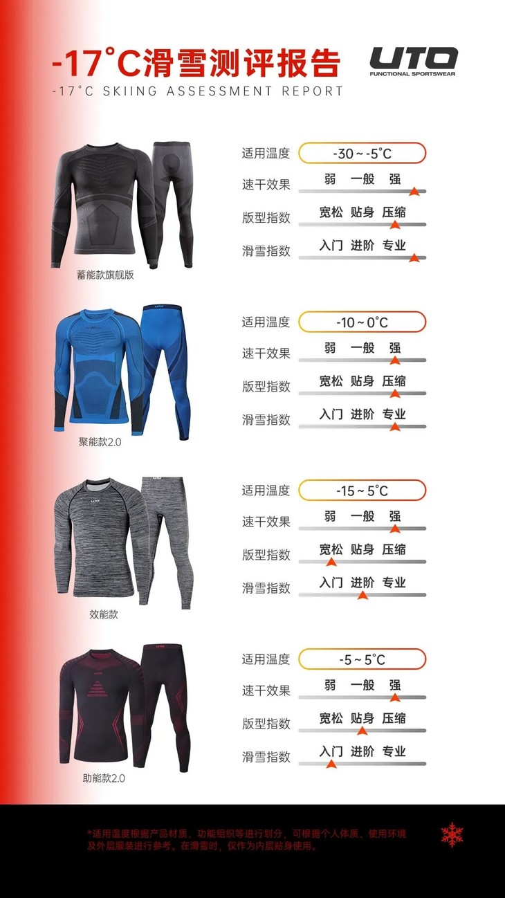 在这样的天气里,我和公司里那个有着14年雪龄,自称“户外小白”的老白同学,针对UTO蓄能款旗舰版、聚能款2.0,效能款、助能款2.0几款内衣进行了测评。