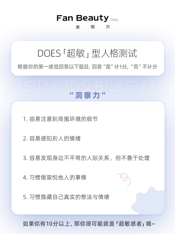 根据你的第一感觉回答以下题目,如果你有📒10分以上,就可能是【超敏感者】!要更好爱护自己哦~