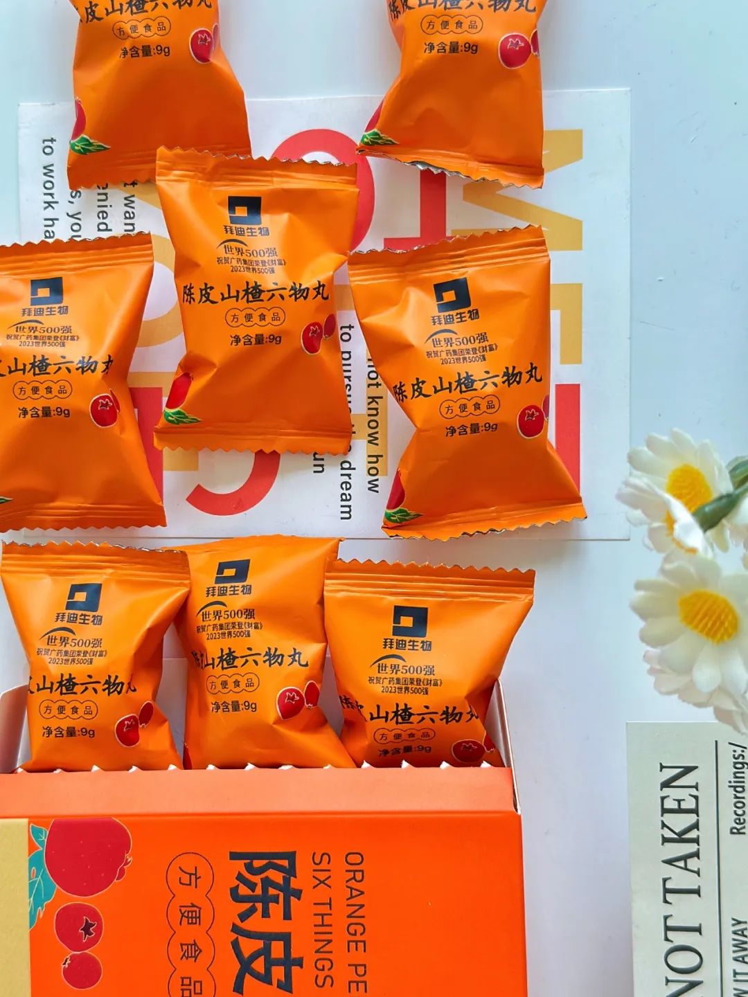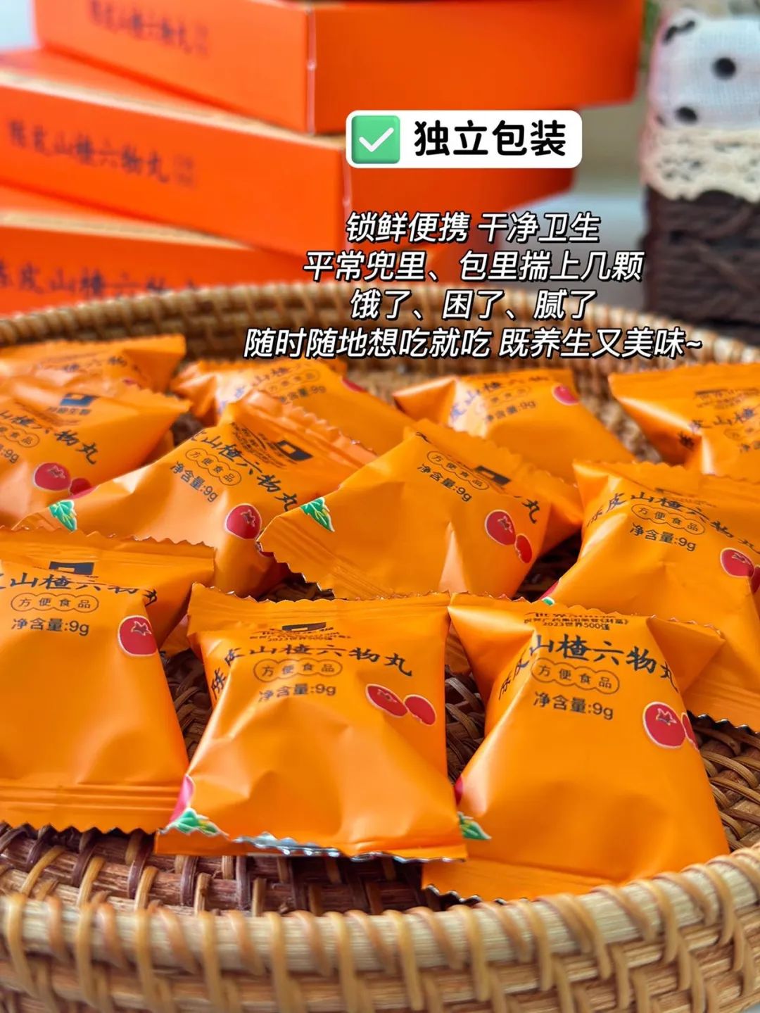 一颗一颗山楂丸,有独立的小包装,锁鲜便携,干净卫生。